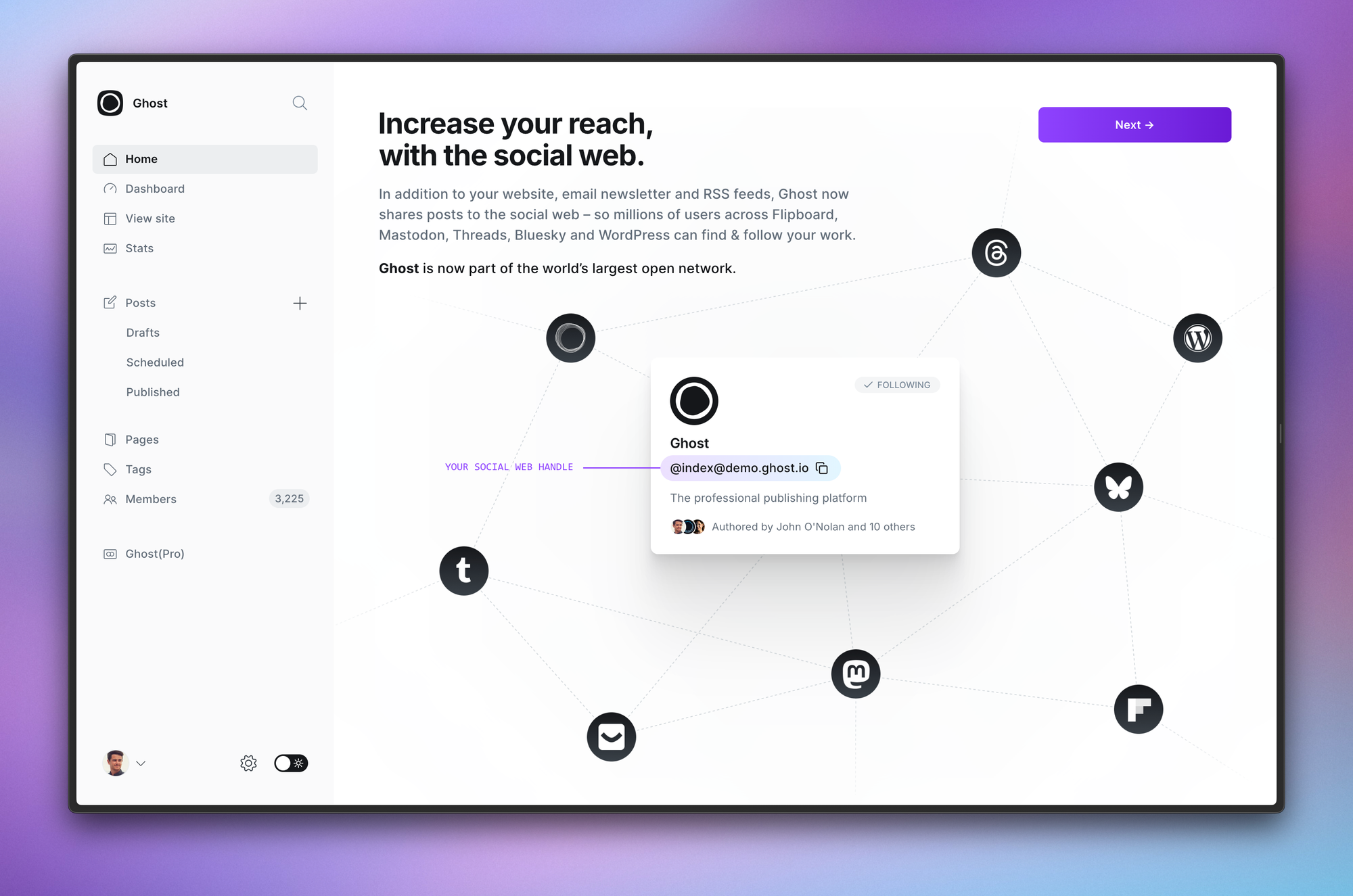 From using and testing this with a small number of publishers for the past few months, it's been interesting to observe how this has shifted the way people are using Ghost. They've told us that with the connection to the social web, the product has come to life in a way that feels familiar, yet refreshingly new.