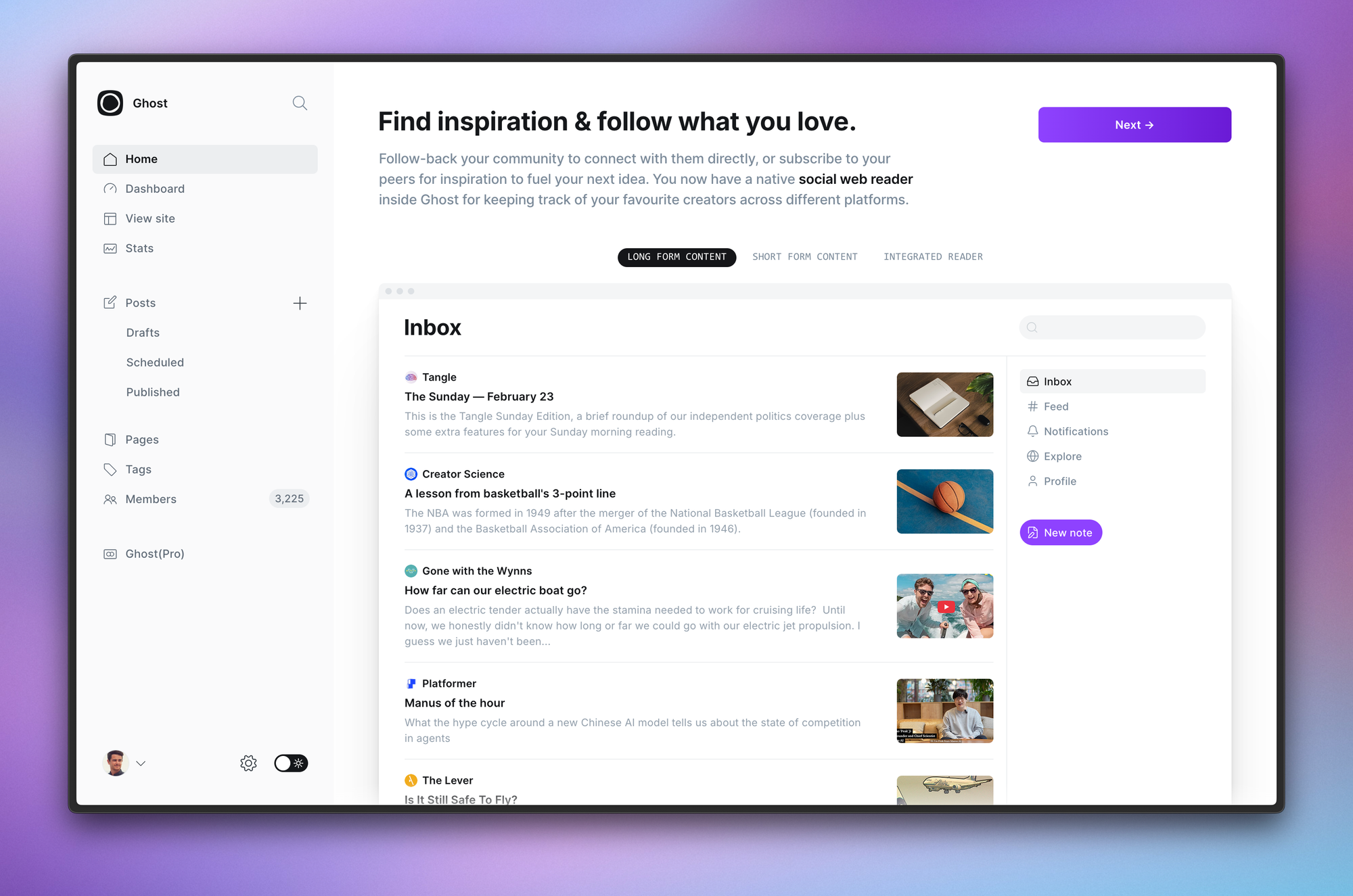 With that in mind, we built a social web reader that allows you to follow and subscribe to other creators and publications right inside Ghost Admin.