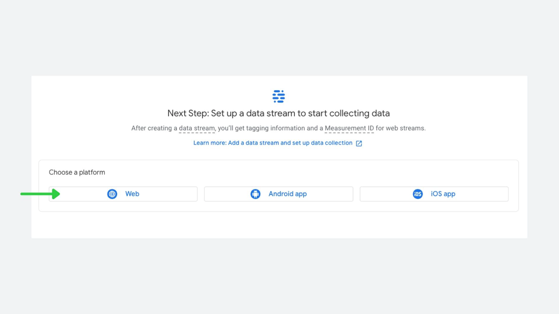 When you set up a new Google Analytics account, follow the prompts to create a new property for your Ghost site.