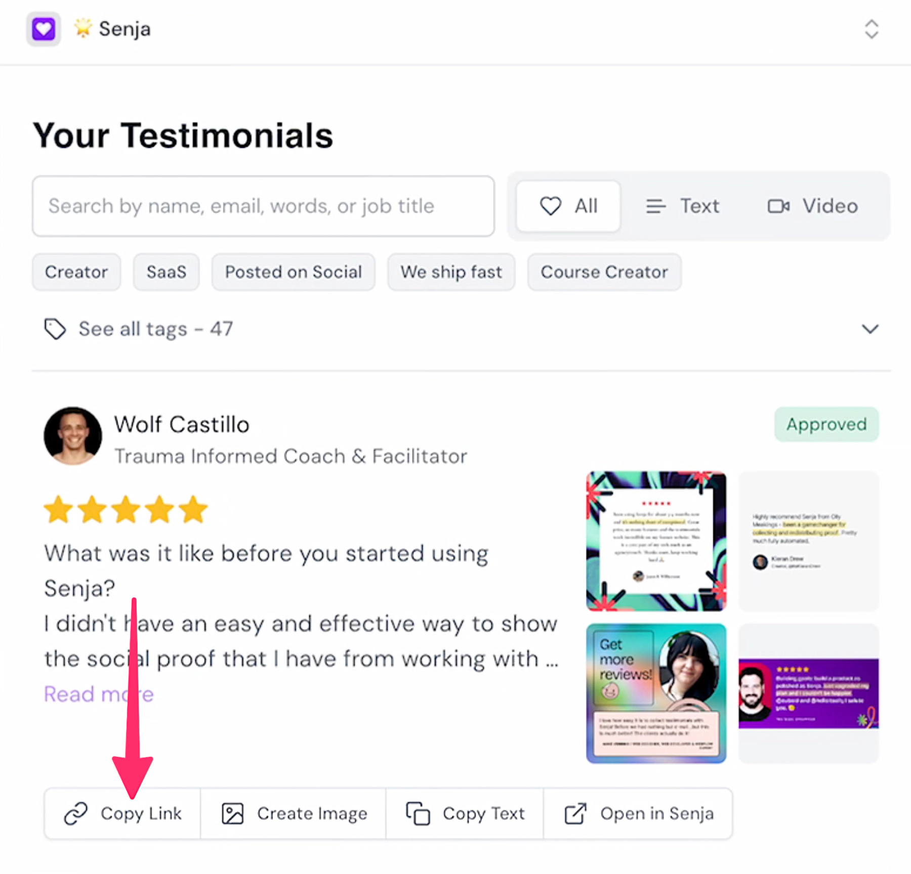 Grab the URL of the Senja component you’d like to embed into your post or page